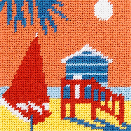 Der einfache Gobelinstich ist ein halber Kreuzstich, der eine glatte, schräge Fläche ergibt. Er eignet sich für große Flächen, feine Schattierungen und saubere, schnelle Stickarbeiten.