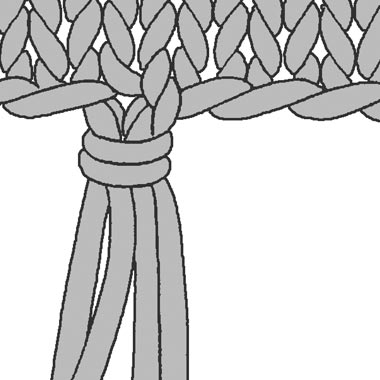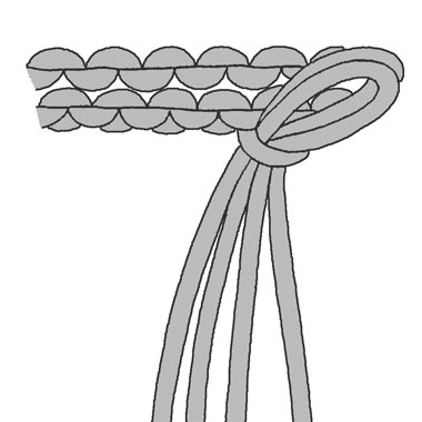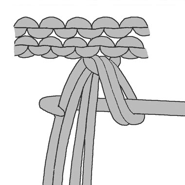 Für diese zusätzlichen Knoten müssen die Fransen etwa 2 cm länger gewickelt werden.