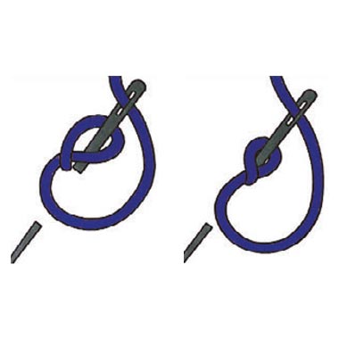Für den einfachen Knötchenstich ausstechen, Faden neben der Ausstichstelle zu einer Schlinge legen, Nadel durch die Fadenschlinge führen, einstechen und die Fadenschlinge sorgfältig anziehen.