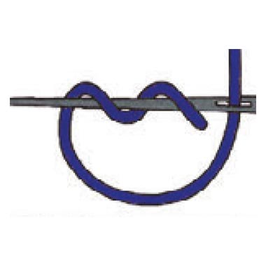 Arbeitsfaden der Stichlänge entsprechend von oben nach unten um die Nadel winden. Fadenwindungen mit den Fingern der linken Hand vorsichtig festhalten.