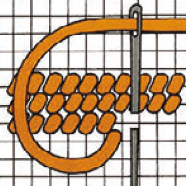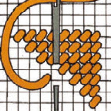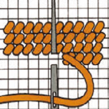 Der einfache Gobelinstich wird dicht aneinanderliegend in hin- und her gehenden Reihen gestickt.