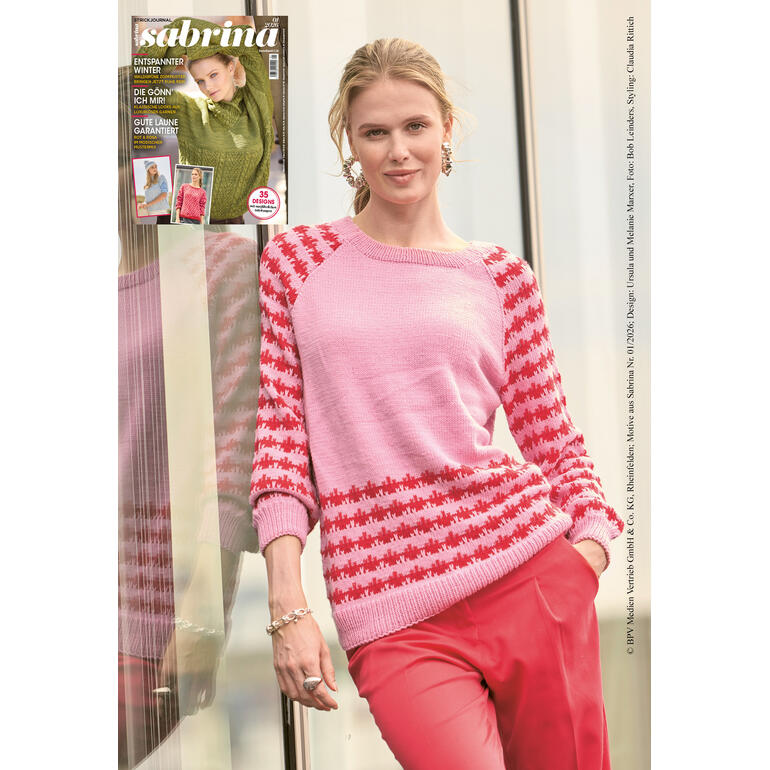 Für Gr. 86-116: Je 100 g Nuovo Merino 180 in Wollweiss und Camel und je 50 g in Greige und Silbergrau.