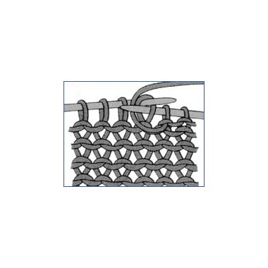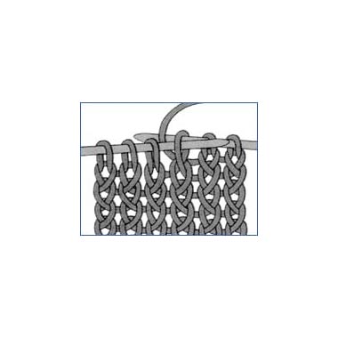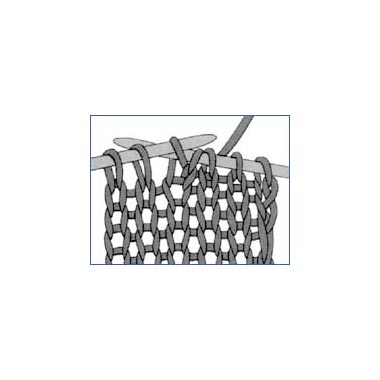 Mit der rechten Nadel in die Masche der linken Nadel hinten von rechts nach links einstechen, den Faden von vorne nach hinten um die rechte Nadel schlingen und durch die Masche nach vorne ziehen. Erst wenn die neue Masche auf der rechten Nadel ist, die vorige Masche von der linken Nadel gleiten lassen.
