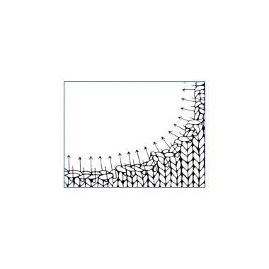 Es wird an einer Schulternaht begonnen, an den Schrägungen und Rundungen werden die Maschen aus den Reihen aufgenommen, dafür jede 3. Reihe überspringen.